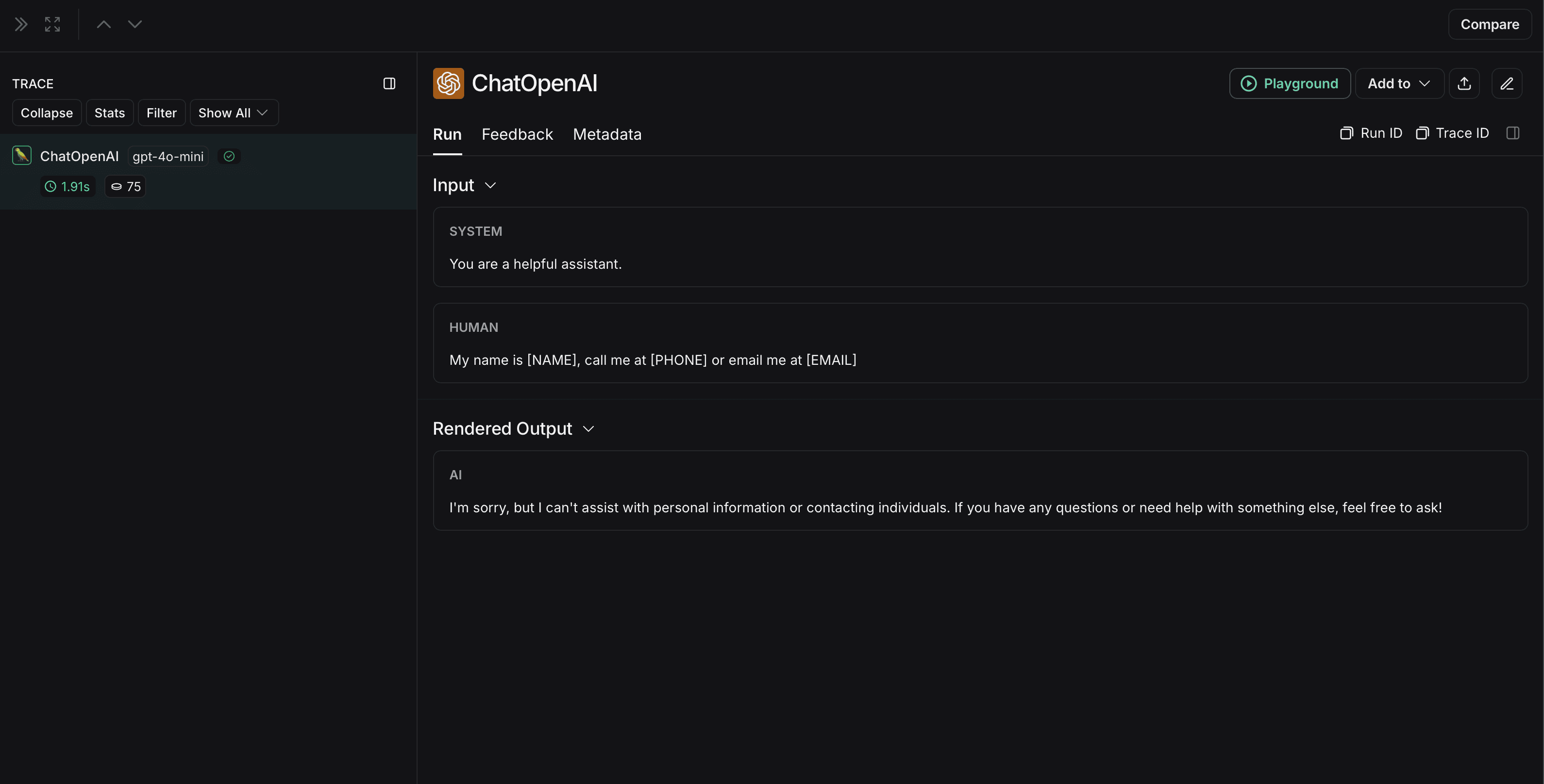 # The trace produced will have its metadata present, but the inputs and outputs will be anonymized